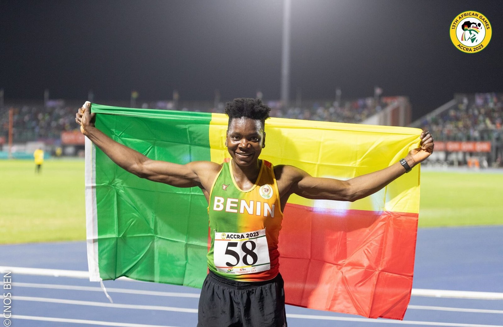 L’athlétisme béninois a brillé aux 13èmes Jeux africains d’Accra, Accra 2023, avec la victoire éclatante d’Odile Ahouanwanou en heptathlon. La championne d’Afrique en titre a dominé la compétition en remportant la médaille d’or après une performance exceptionnelle .