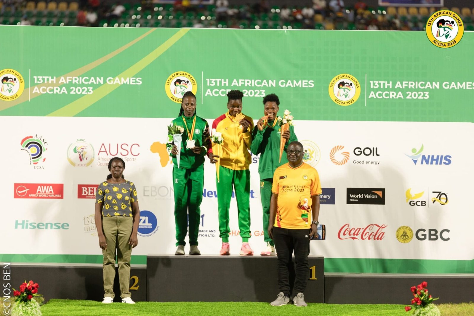 En remportant l’or, Odile Ahouanwanou a permis au Bénin de s’illustrer sur la plus haute marche du podium. Elle a devancé la Nigériane Francis Petersen Kemi (5268 pts) et la Camerounaise Mafogang Tenkeu Adèle (5181 pts), complétant ainsi un podium dominé par les représentantes béninoises.