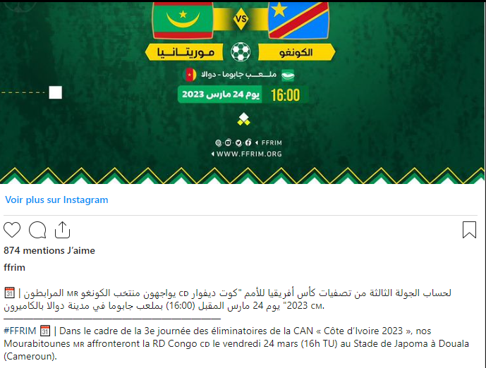 C’est le Stade de Japoma du Cameroun qui va accueillir la rencontre prévue pour le vendredi 24 mars 2023 à 16h, temps universel, selon les infos de la Fédération mauritanienne de football (FFRIM).