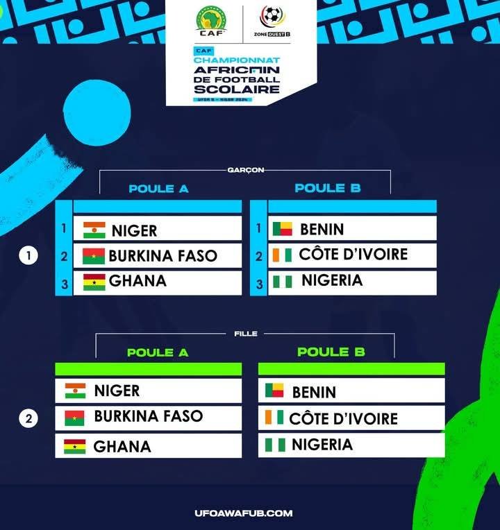3ème édition du Championnat d’Afrique Scolaire : Le Bénin repart à l’assaut de l’UFOA B, tirage officiel