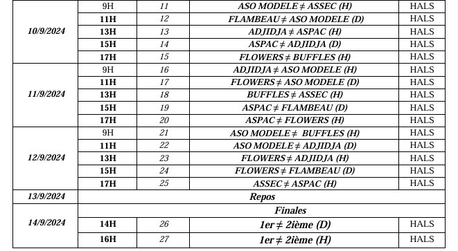 Le calendrier complet des play – offs est à télécharger ici : Calendrier des Matchs des Play-offs du 8 au 14 septembre 2024