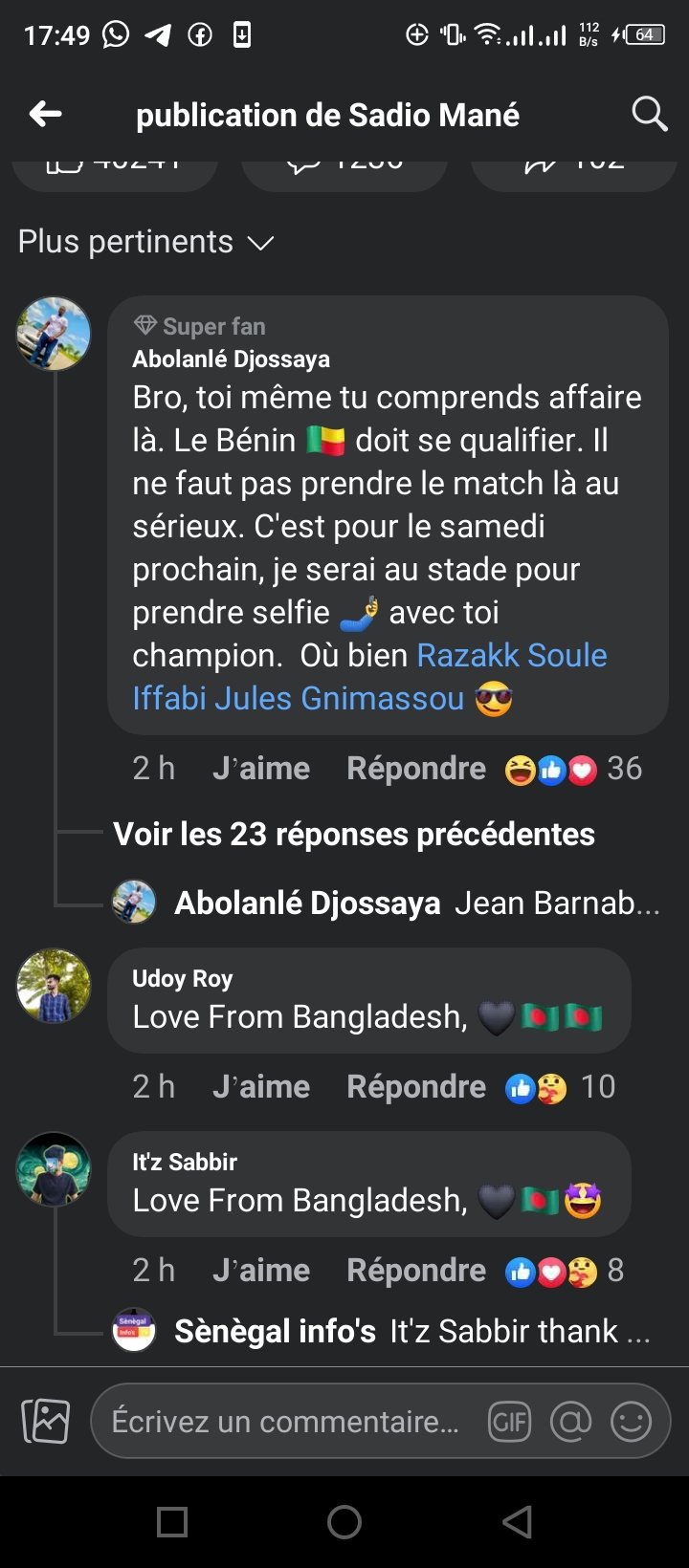 L’engagement et la détermination de Sadio Mané suscitent l’enthousiasme parmi les fans des deux équipes, créant une atmosphère d’excitation et d’anticipation. Les supporters des deux camps ont hâte de voir Mané en action. Le match promet d’être intense et passionnant, avec Sadio Mané au cœur de toutes les attentes et les espoirs devant des Béninois qui n’ont qu’un seul objectif : Obtenir un bon résultat. Ceux-ci sont bien confiants, mobilisés et rêvent grand.