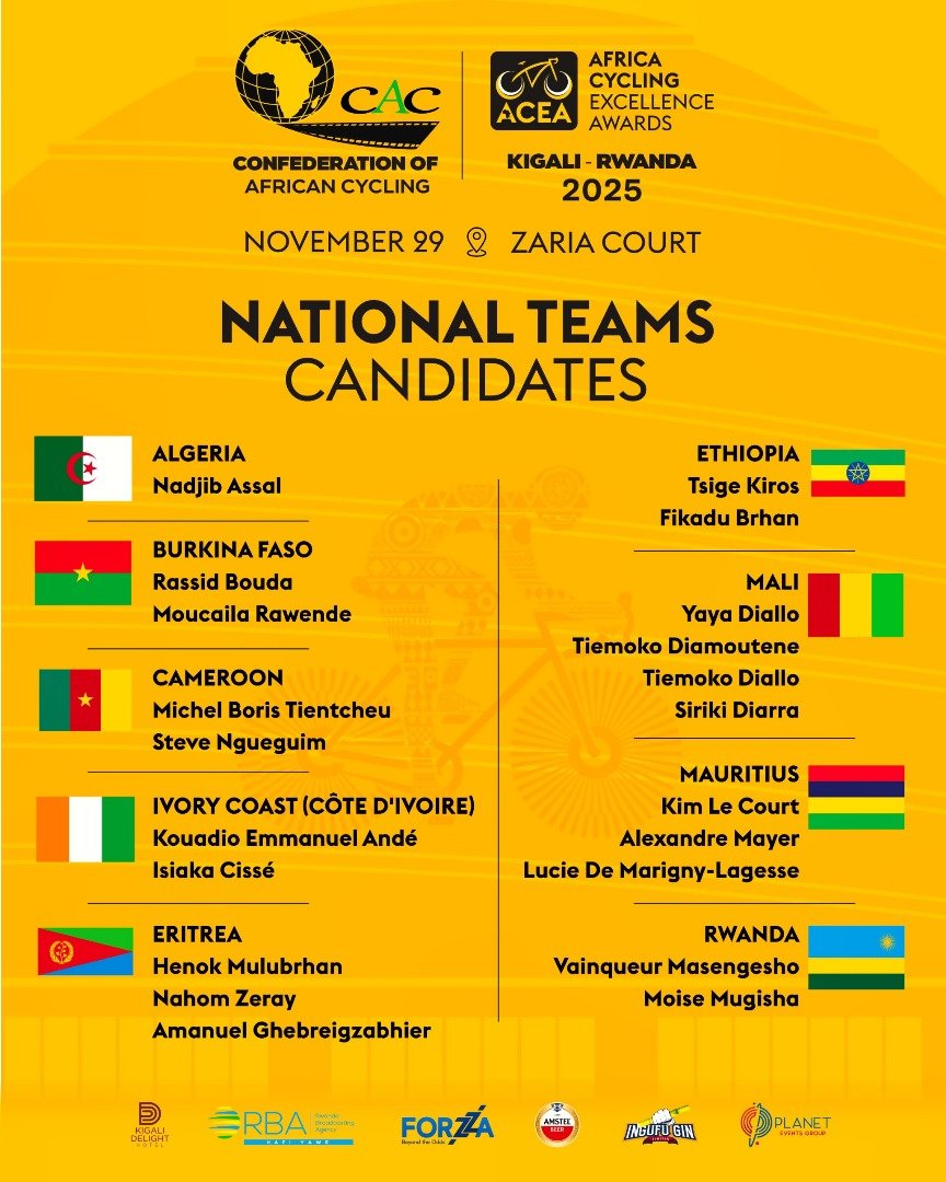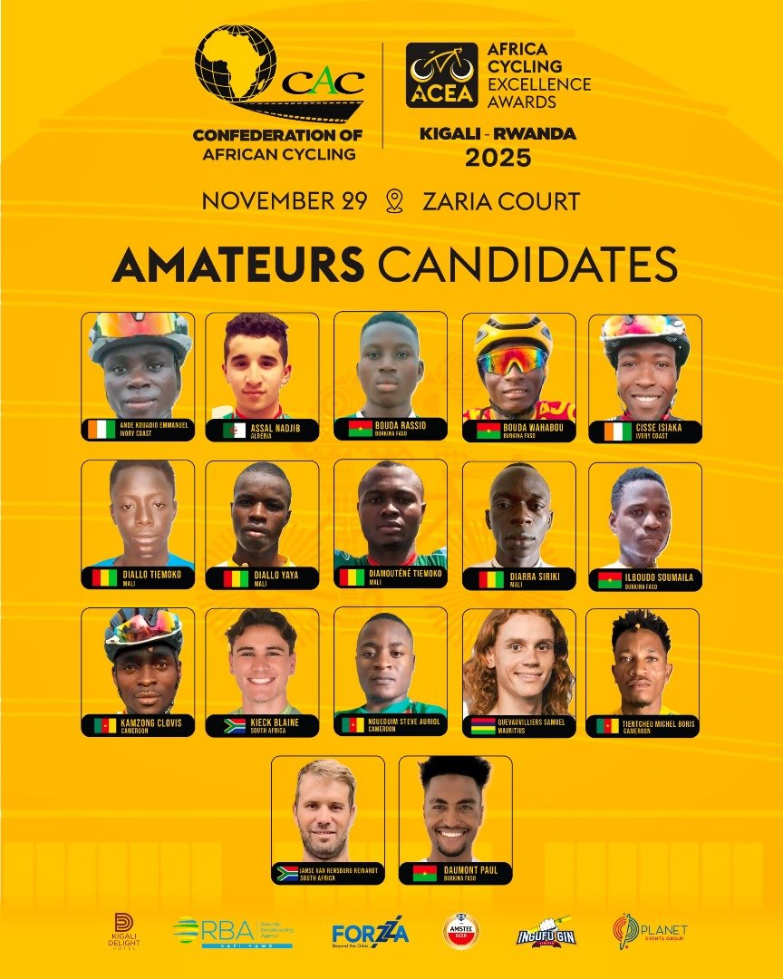 Les gagnants seront connus le 29 novembre 2025, lors de la cérémonie officielle organisée à Kigali. Les résultats découleront d’un vote du jury, composé de représentants des fédérations africaines de cyclisme et d’experts reconnus pour leur contribution au développement de la discipline.