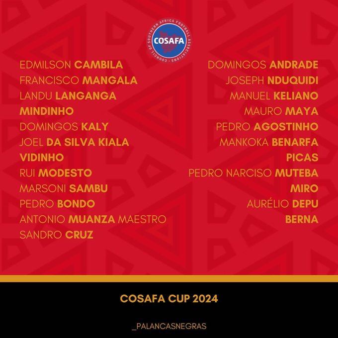 Parmi les habitués, on retrouve David Carmo, Mabululu et Domingos de Andrade. Plusieurs nouveaux joueurs intègrent également la sélection. Randy Nteka, Sandro Cruz, et Benson Manuel, rejoignent les Palancas Negras.