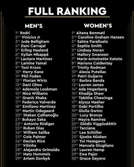 La 68e cérémonie du Ballon d’Or a eu lieu ce lundi 28 octobre 2024 à Paris, au Théâtre du Châtelet. Cette prestigieuse soirée a couronné les meilleurs joueurs et joueuses de la saison écoulée. les performances sportives ont non seulement été récompensé, mais aussi l’engagement sociétal. Voici le palmarès complet des lauréats de cette édition, marquée par le triomphe de l’Espagnol Rodri et de la joueuse du FC Barcelone Aitana Bonmati.