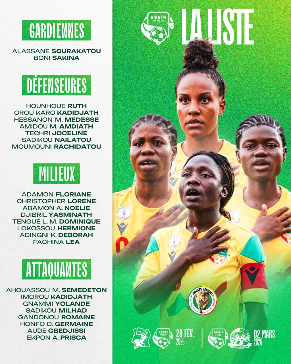 face à la Équipe de Côte d’Ivoire féminine de football le 28 février 2026 ;