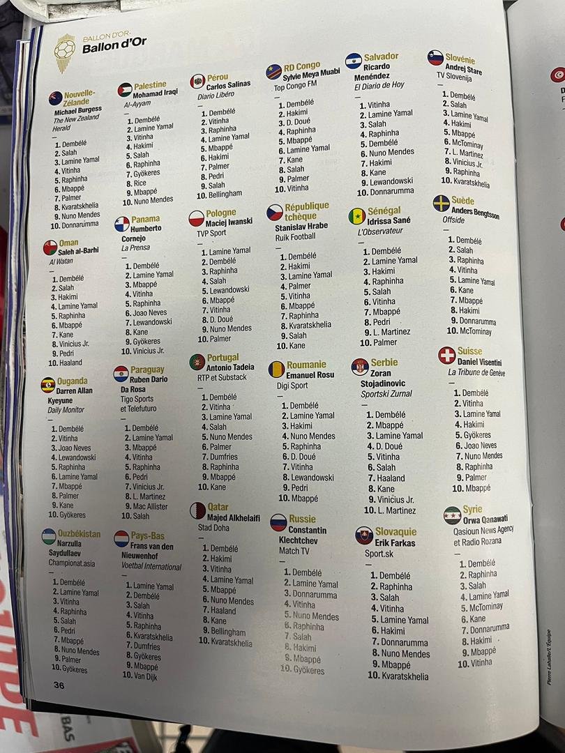 C’est fait désormais, France Football a publié les votes par pays pour le Ballon d’Or 2025, remporté par Ousmane Dembele. Découvrez le point sur les votes par pays, notamment les choix du journaliste béninois Abdul Fataï Sanni, représentant officiel du Bénin.