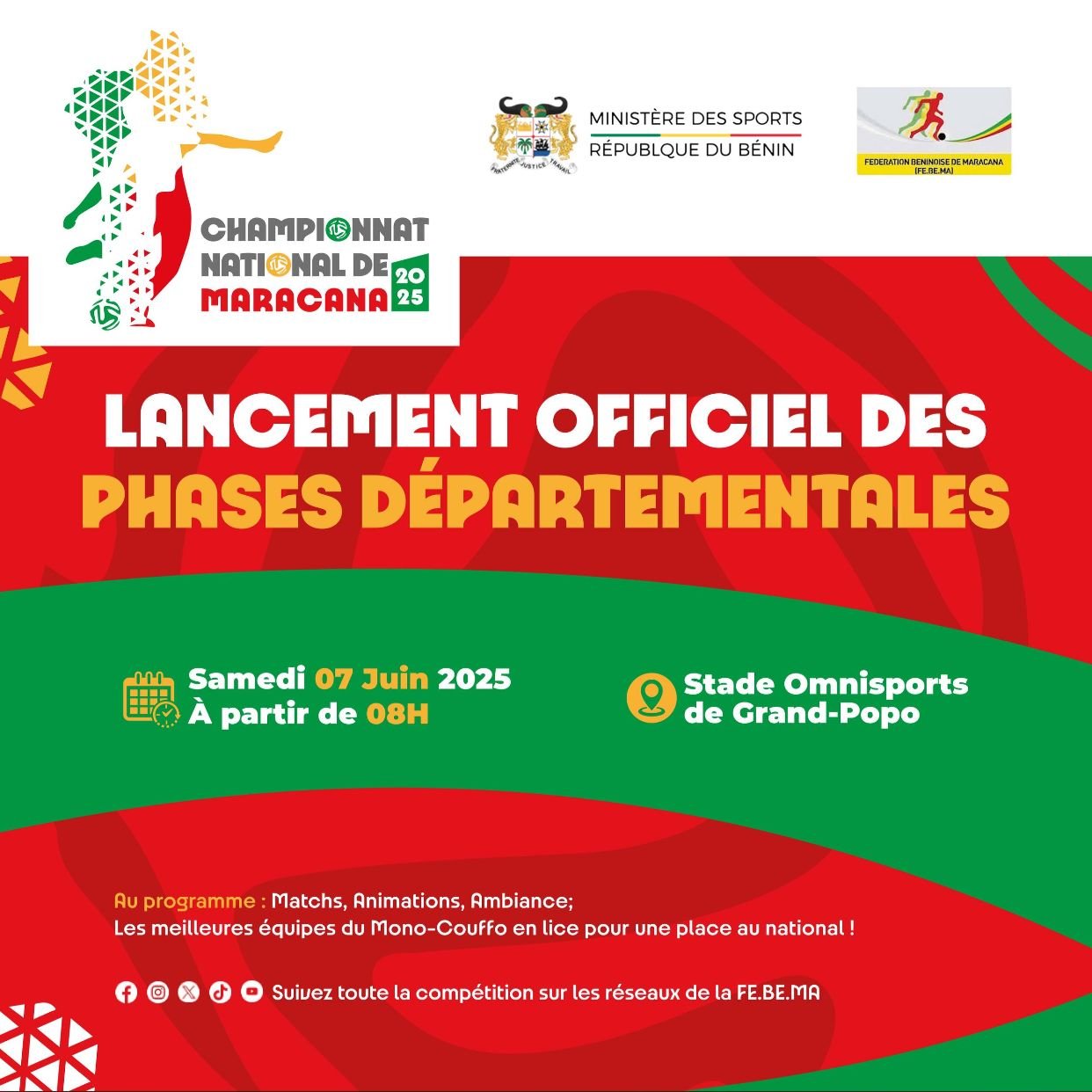 La saison 2025 du Maracana béninois débute ce samedi 7 juin 2025 avec les phases départementales du championnat national. La Fédération Béninoise de Maracana (FE.BE.MA), après la publication de son calendrier officiel, lance ainsi les premières compétitions majeures de l’année.