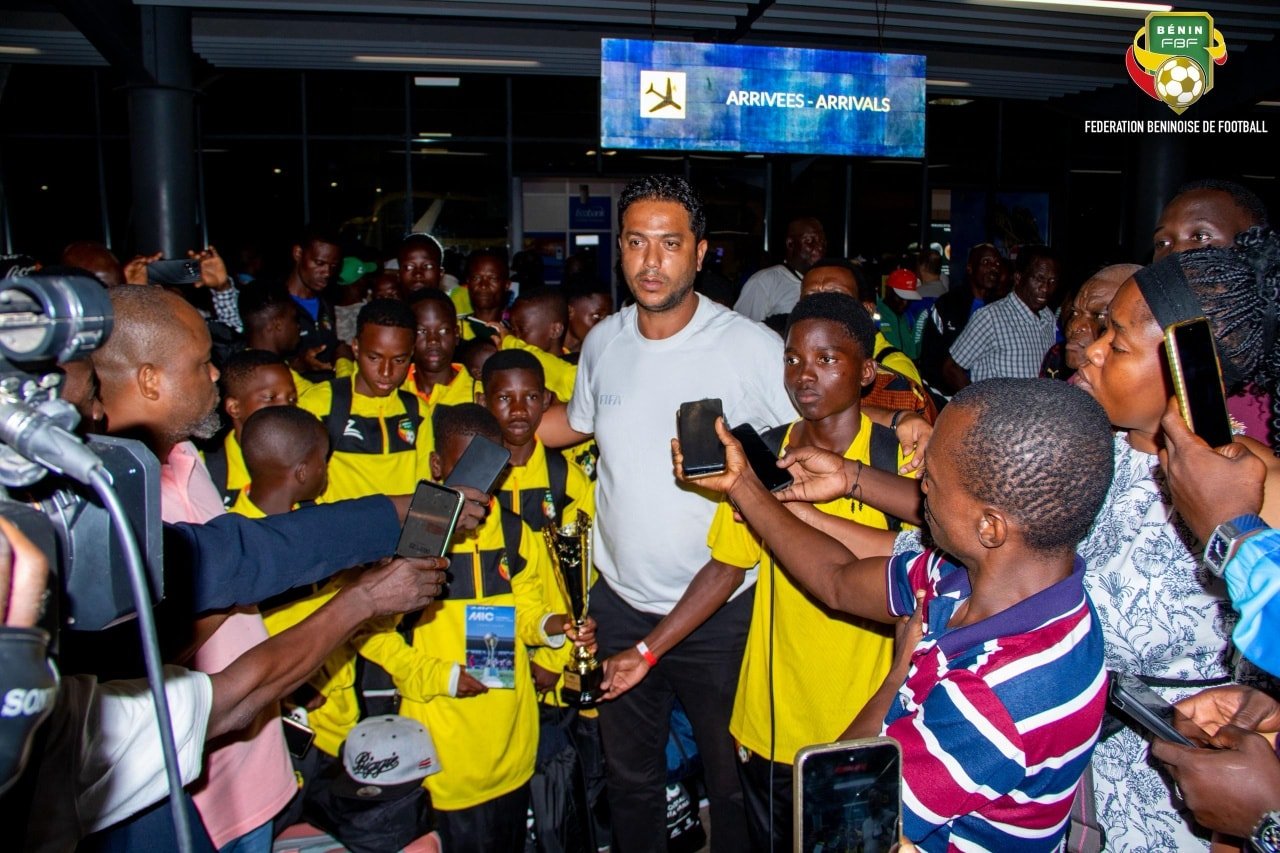 Les jeunes pensionnaires du Centre d’excellence de football de Missérété ont regagné le Bénin ce mercredi 2 juillet 2025, après un séjour à Punta Cana. À leur arrivée à l’aéroport, ils ont été accueillis par Mathurin de Chacus, président de la Fédération Béninoise de Football (FBF), accompagné d’Innocent Atindéhou, membre du Comité exécutif de la FBF, et de Bonaventure Codjia, Directeur du Sport d’Élite au Ministère des Sports.