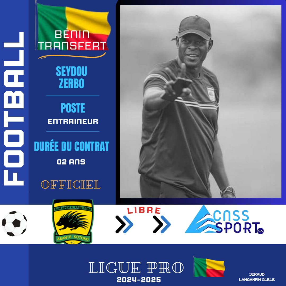 Au Bénin, la CNSS SPORT SA a officiellement nommé Seydou Zerbo comme entraîneur principal de son équipe de football, les Étoiles Filantes. Ceci, pour un contrat de deux ans.