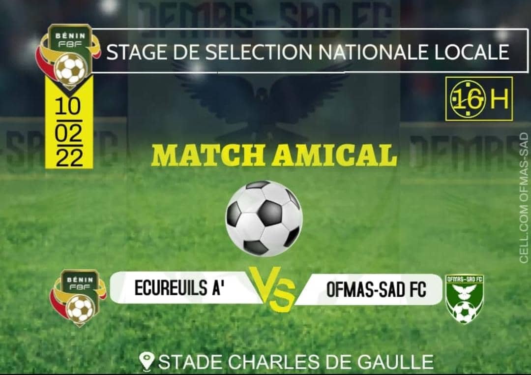 Dans le cadre de la mise en place d’une sélection locale compétitive, le selectionneur des Écureuils A’, Moussa LATOUNDJI avait convoqué 24 joueurs pour un stage du 07 au 14 février 2022 à Porto Novo. Ainsi, pour le stage une rencontre amical a déjà été programmé pour les Écureuils A’, le 10 février 2022 face à OFMAS SAD Fc.