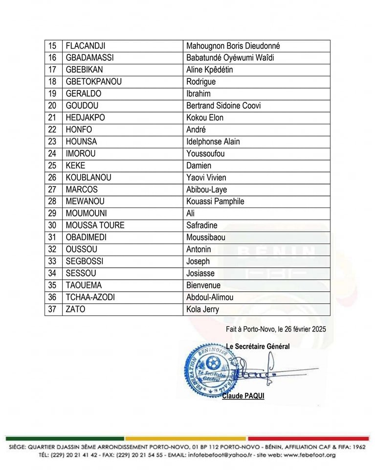 La Fédération Béninoise de Football (FBF) a dévoilé, ce vendredi 28 février 2025, la liste des candidats présélectionnés pour la formation de la Licence C CAF – Session 1 (2025). Cette formation, qui vise à renforcer les compétences des entraîneurs, se déroulera selon un cadre bien défini avec des conditions spécifiques.