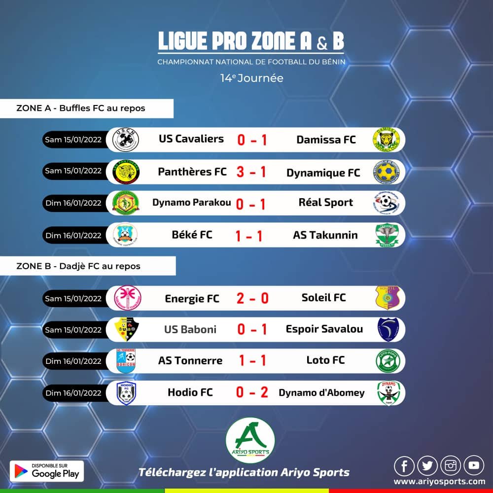 Démarré depuis ce samedi, le 14e acte de la ligue professionnelle de football du Bénin s’est clôturé ce dimanche 16 janvier 2022. Fortunes diverses pour les équipes du haut du tableau. Coton FC et Espoir FC assurent, Loto FC freiné, voici le point complet par zone.