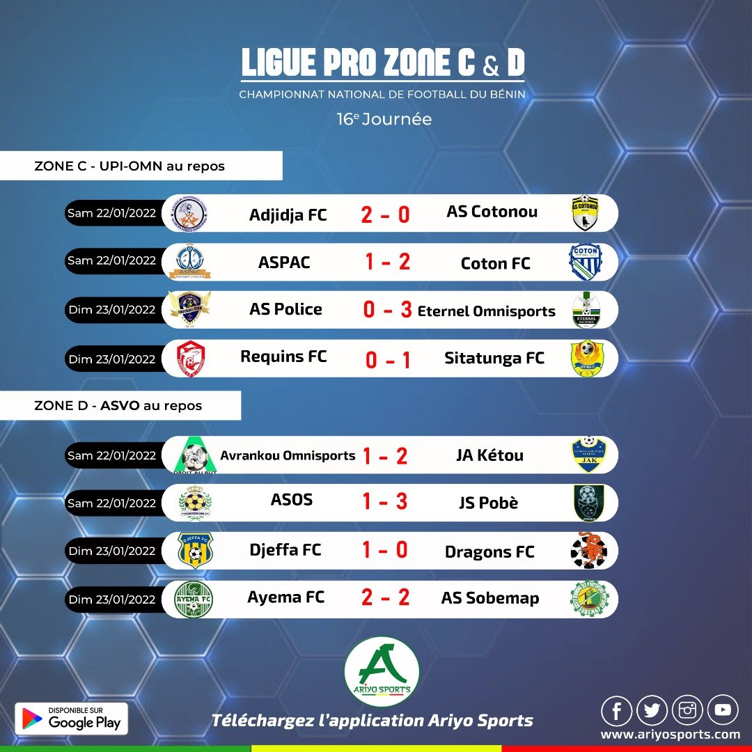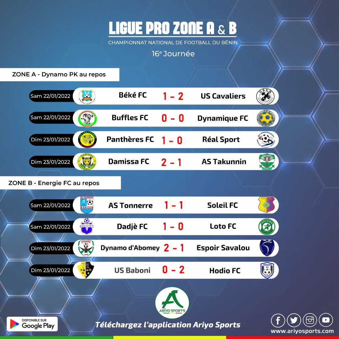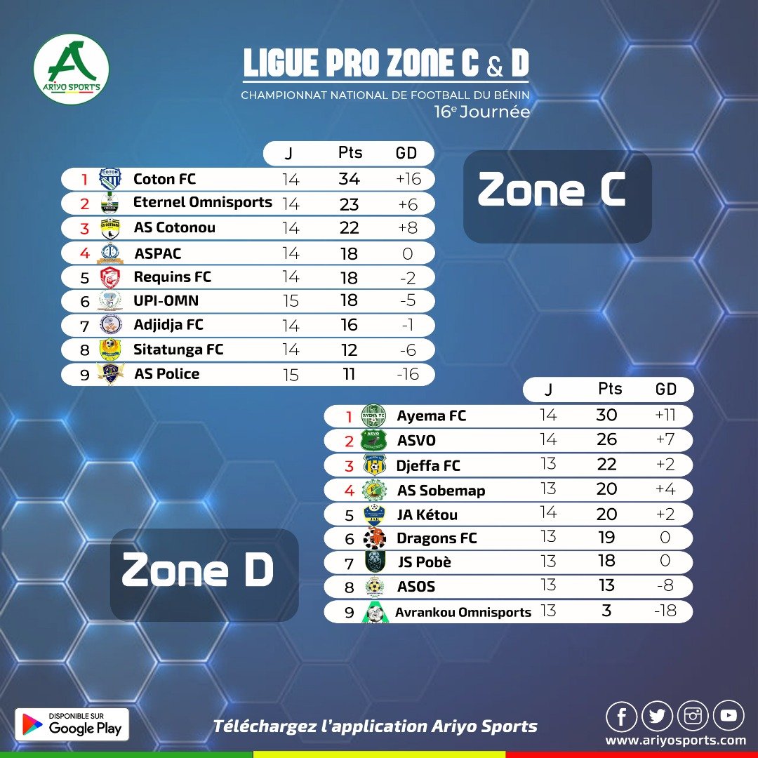 Bénin Ligue Pro, J16 : Ci-dessous tous les résultats et classements par zone en images