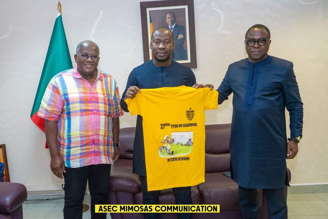 Une délégation de l’ASEC Mimosas composée de son 1er vice-Président, M. Francis OUEGNIN, du président du CNACO M. TAYORO Franck et du Secrétaire général M. Francis DJOMAN a rendu visite ce vendredi 11 Mars 2022, au Ministre des Sports béninois, Monsieur Oswald Homeky dans ses locaux.