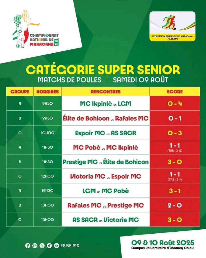 Encore discret il y a quelques années, le Maracana s’impose désormais comme une force montante du sport béninois. Accessible, intense et convivial, il séduit un public grandissant et fédère autour des valeurs du fair-play et de l’esprit d’équipe. La clôture, prévue ce dimanche 10 août 2025, promet une finale haute en couleurs où passion et détermination seront à leur apogée.