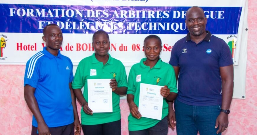 Dans le cadre des activités du Fonds de Solidarité pour les Projets Innovants (FSPI), la troisième activité, qui consiste à la formation des arbitres de ligues et des déléguées techniques, s’est achevée ce mardi 13 septembre 2022. Organisée par la fédération béninoise de handball (FBHB), avec l’appui de l’Ambassade de France près le Bénin, cette formation a permis aux stagiaires d’être formés avec des cours théoriques et pratiques, afin de gagner en expérience. Elle s’est conclue avec la remise d’attestations de participation aux stagiaires.