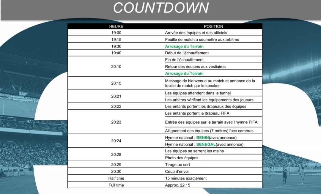Le coup d’envoi du match est prévu à 20h30, heure béninoise, et à 19h30 au Sénégal. Les supporters pourront suivre les actions en direct sur la chaîne RTS, qui assure la retransmission exclusive de l’événement.