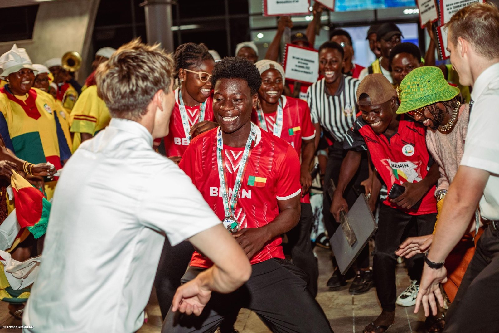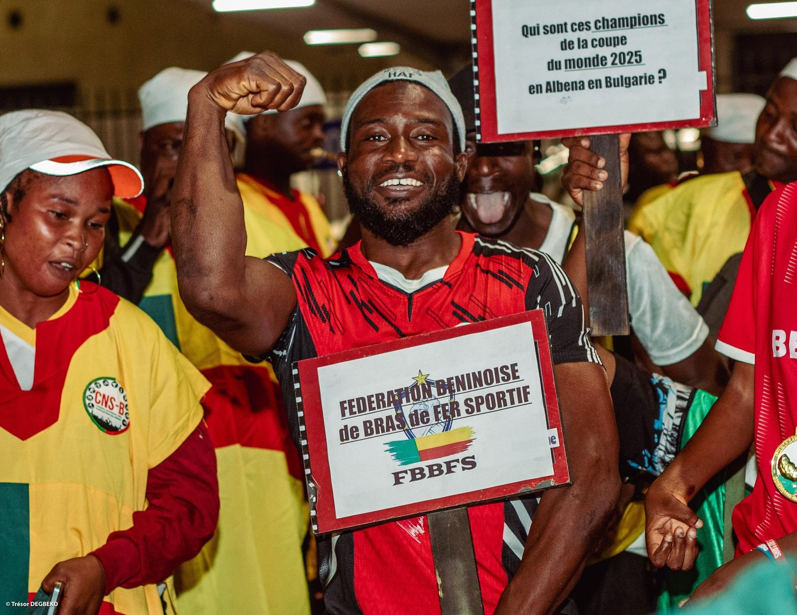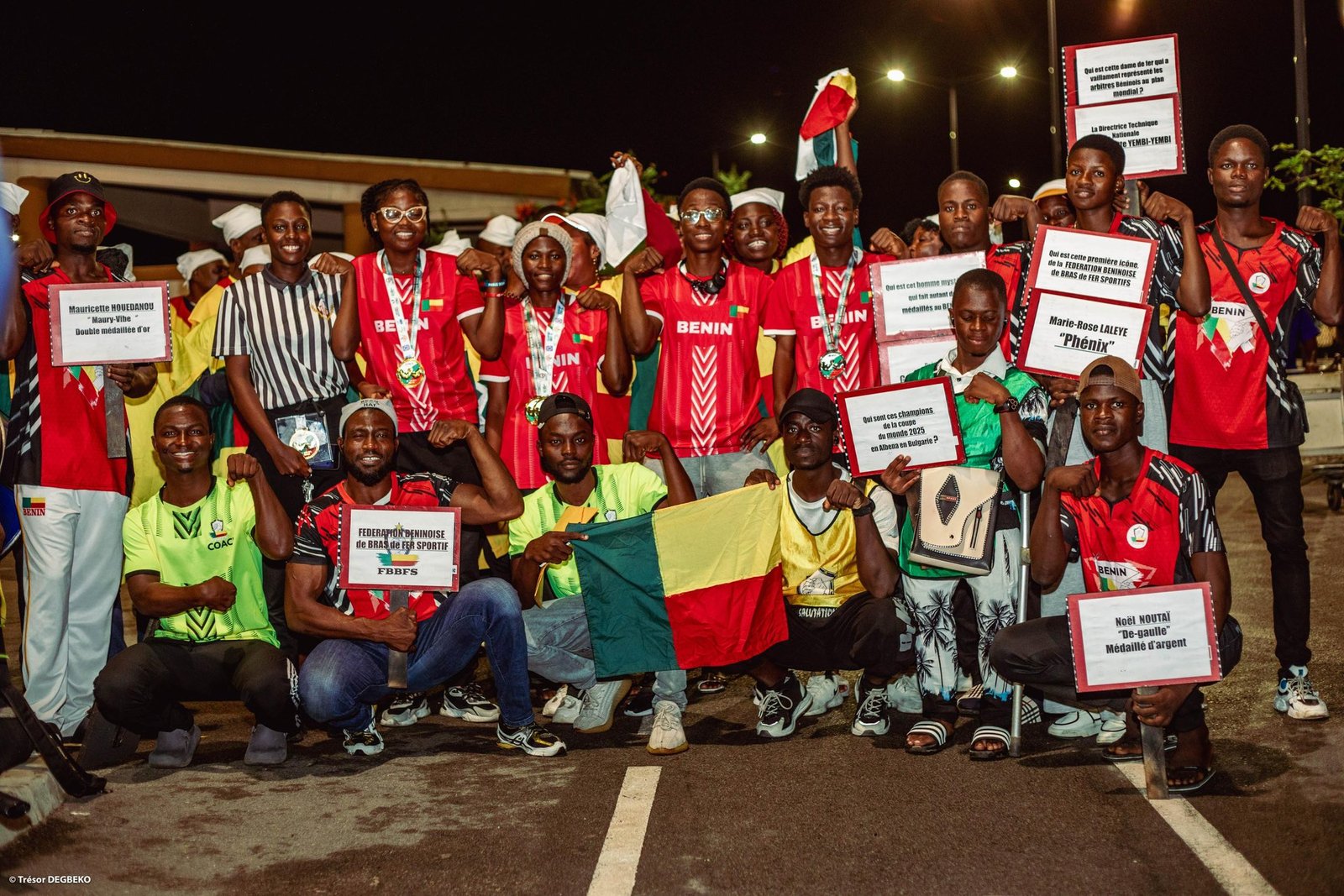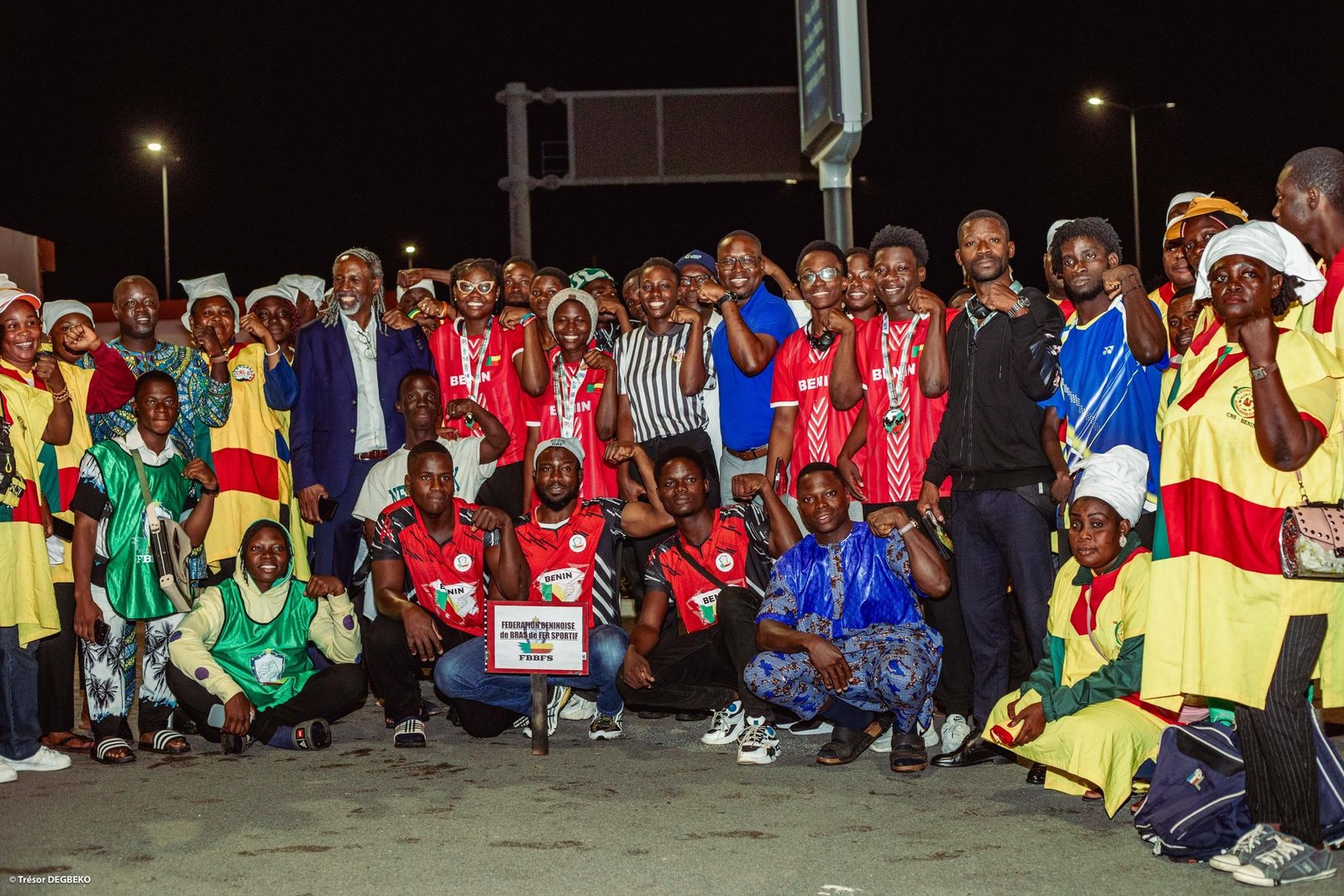 La sélection nationale du Bénin de bras de fer sportif est rentrée au pays ce mercredi 24 septembre 2025 à 21h30, à l’aéroport international Cardinal Bernardin Gantin de Cotonou. Les athlètes reviennent de la Coupe du Monde de Bras de Fer Sportif, organisée à Albena (Bulgarie) du 10 au 23 septembre 2025, auréolés de succès. C’est un retour triomphal pour la sélection béninoise de bras de fer sportif. Avec 4 médailles et la première place africaine, la délégation a reçu un accueil digne de champions à Cotonou.