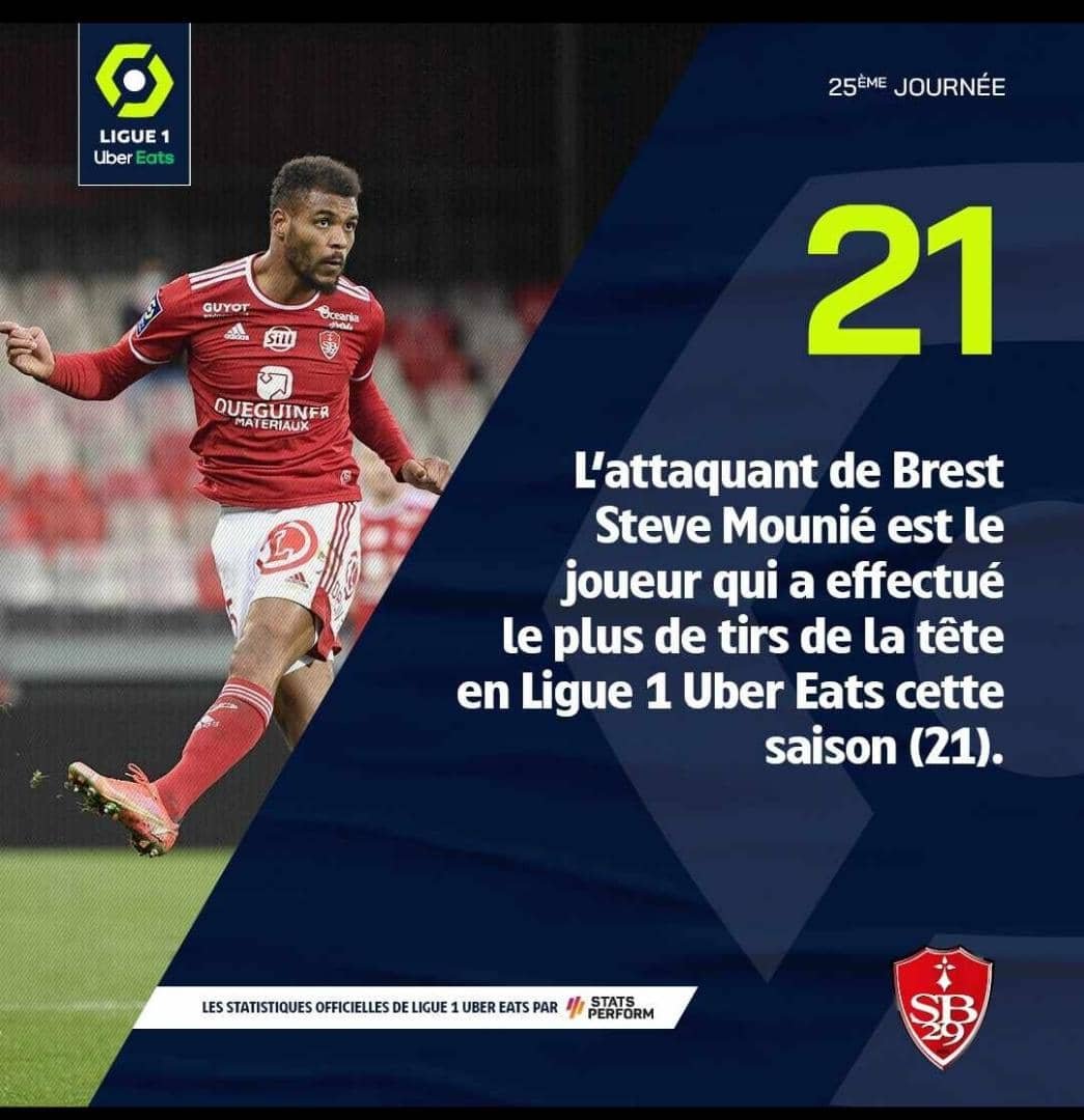 L’international Béninois Steve Mounié, attaquant de Brest en ligue 1 française, a montré qu’il est le genre d’attaquant qui apprécie une manière spéciale de jouer. Mounié est un attaquant qui aime le jeu de la tête comme il le montre souvent. L’attaquant béninois, a encore une fois prouvé cela en ligue 1 dans son championnat. Une statistique de ligue 1 a montré que Mounié est le joueur qui a effectué plus de tirs de la tête.
