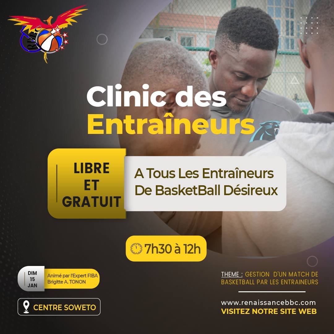 Brigitte Tonon, l’experte de la FIBA, est l’invité ce troisième clinic organisé. Elle sera aux côtés de tous les entraîneurs de la Renaissance Basketball club afin d’échanger sur le thème : « La gestion d’un match par les entraîneurs ». Ceci va permettre aux entraîneurs de renforcer leurs compétences et notions en matière de coaching. « Suite aux multiples demandes, Renaissance Basketball Club offre exceptionnellement l’opportunité à tous les entraîneurs désireux de participer à son clinic », a annoncé le club de Cotonou.