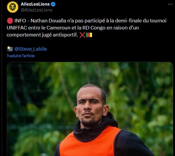 Nathan Doualla, le plus jeune joueur de la CAN 2023, se retrouve à nouveau au cœur d’une controverse. Le jeune attaquant camerounais, qui avait déjà été impliqué dans une polémique sur son âge lors de la CAN 2023, est cette fois-ci pointé du doigt pour comportement antisportif.