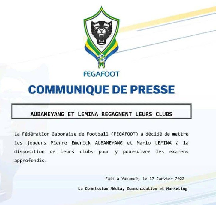 L’information a été révélée à travers un communiqué de la fédération gabonaise de football. Ci dessous en image l’intégralité du communiqué :