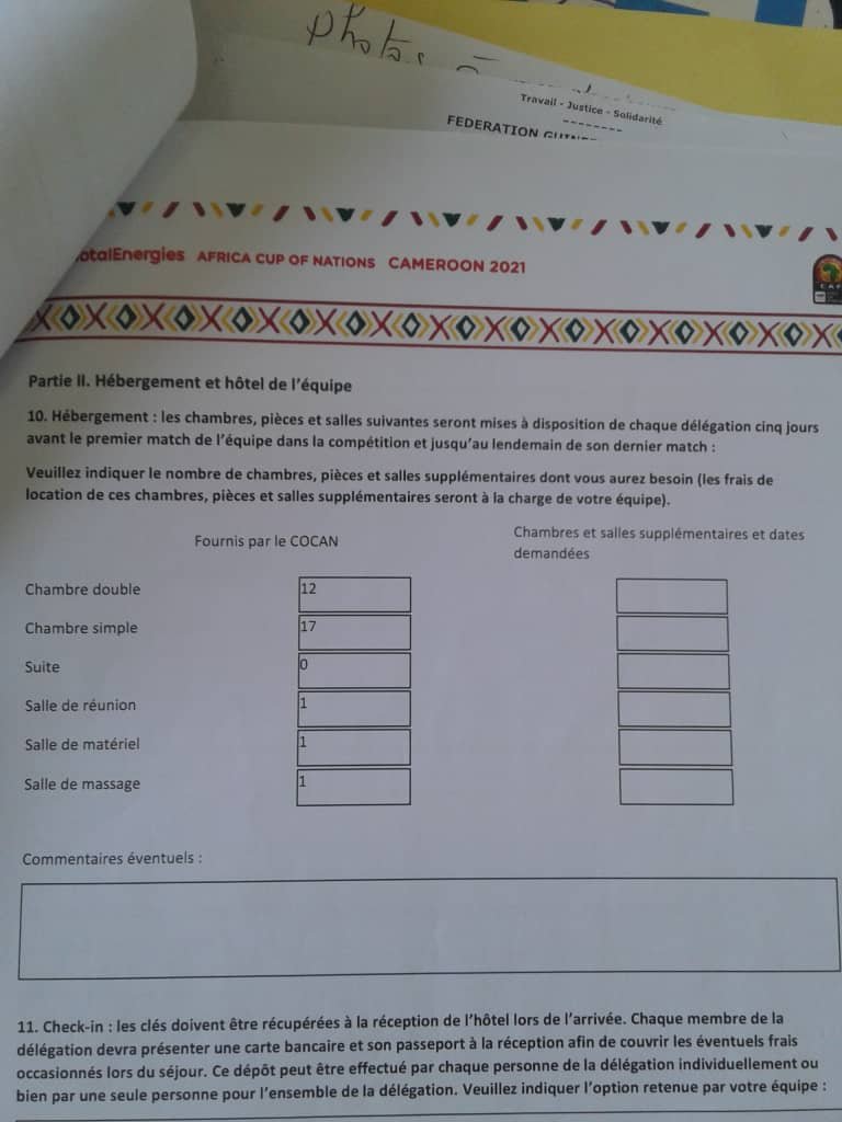 Au moment où la Covid-19 dévaste plusieurs sélections en pleine préparation de la CAN, qui a eu l’idée de mettre une bonne partie de chaque délégation à 2 par chambre ? Veulent-ils vraiment réduire le risque de contamination pendant la CAN ou veulent-ils propager la Covid-19 ?