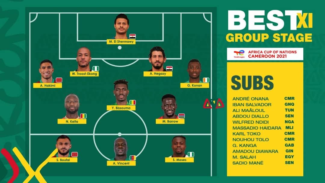 La phase de groupe de la Can 2021 est désormais achevée. Place désormais à l’étape suivante de la compétition qui est la phase à élimination directe. Elle débute par les huitièmes de finale qui commencent le 23 janvier 2022. Mais avant de débuter cette nouvelle phase, le bilan de la phase de groupe a été effectué. A cet effet, le Groupe d’étude technique (TSG) de la CAF a publié son meilleur de la phase de groupes.