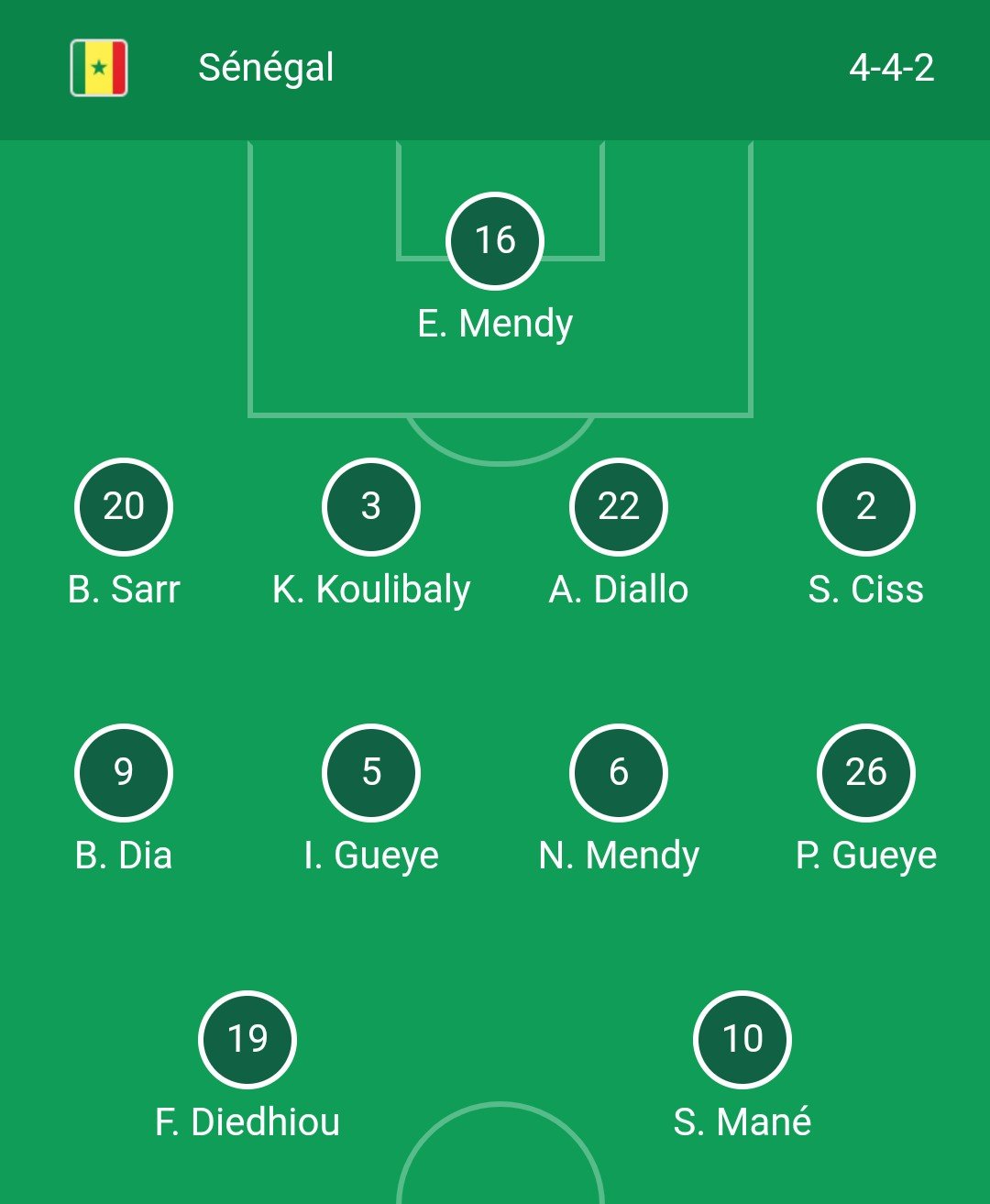 Ce Mardi 25 janvier 2022, le Sénégal et le Cap-Vert se rencontre dans le cadre des huitièmes de finale de la Can 2021. L’objectif de chaque équipe est de gagner et de rallier les quarts de finale. Découvrez les 11 joueurs sur lesquels les deux équipes comptent pour démarrer la rencontre.