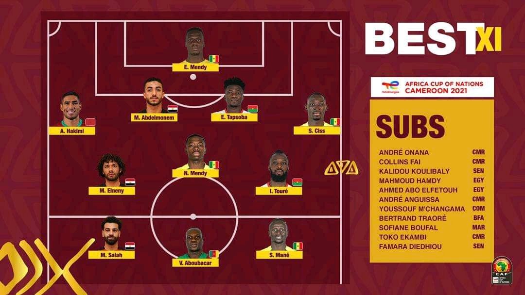 La Can 2021 s’est achevée ce dimanche 06 février 2022 avec le triomphe du Sénégal. Deux ans après l’échec en finale contre l’Algérie (0-1) en 2019, le Sénégal a remporté la première Coupe d’Afrique des Nations de son histoire en prenant le dessus sur l’Egypte (0-0, 4-2 t.a.b.) au Cameroun. Au lendemain de la finale, la CAF a dévoilé son 11 type constitué des joueurs qui ont brillé dans la compétition.