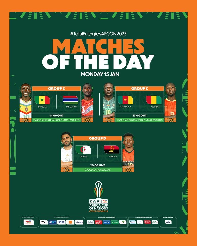 La CAN 2023 se poursuit avec une journée chargée alors que les champions en titre, le Sénégal, font leurs débuts dans le tournoi. Voici le programme des matchs pour ce lundi 15 janvier 2024.