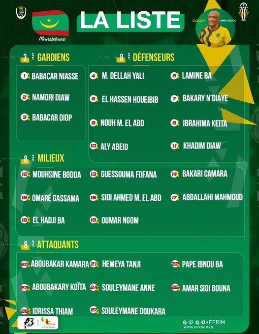 Le sélectionneur de l’équipe nationale de la Mauritanie, Amir Abdou, a déjà dévoilé la liste des 27 joueurs qui représenteront les Mourabitounes lors de la CAN 2023. La nouvelle la plus marquante de cette sélection est la présence d’Oumar Ngom. À seulement 19 ans, le milieu de terrain du Pau FC a été appelé pour la première fois en équipe nationale A. L’autre grande révélation de la liste est le retour d’El Hadji Ba.