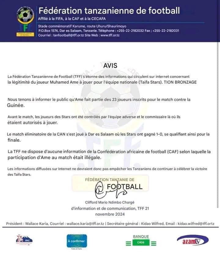 CAN 2025 : La Tanzanie répond cash à la Guinée (Communiqué officiel)