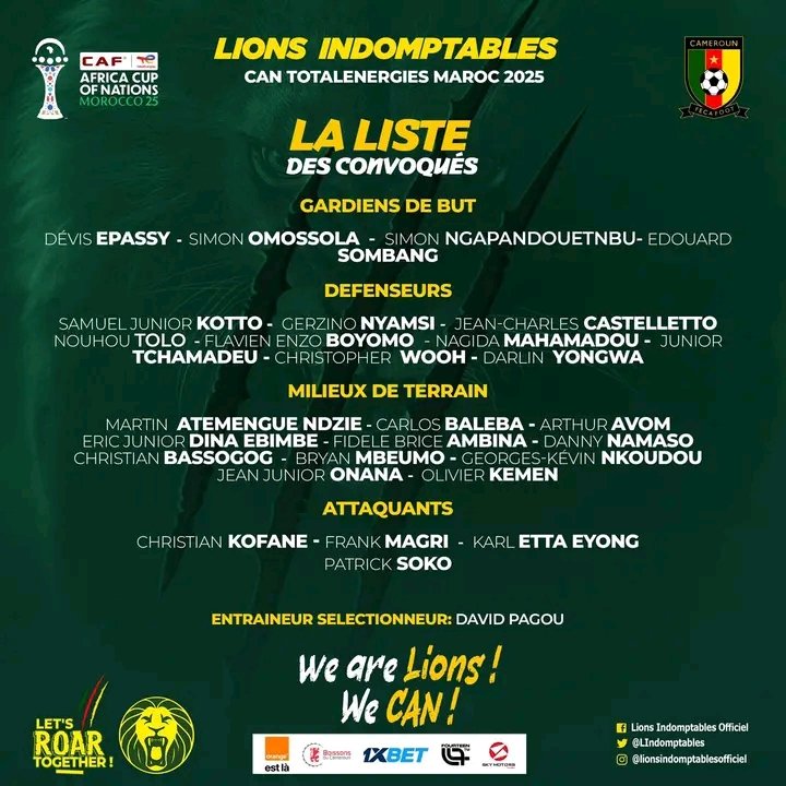 Ce lundi 1er décembre 2025, le Cameroun à travers la FECAFOOT, a dévoilé la liste des joueurs convoqués pour la CAN qui démarrera dans 20 jours exactement au Maroc (du 21 décembre au 18 janvier). Et il y a de la casse. En effet, numéro un dans les cages jusqu’ici et forte tête du vestiaire, André Onana est éjecté. Perçu comme fervent soutien de Marc Brys (limogé un peu plus tôt), le capitaine Vincent Aboubakar n’échappe pas au coup de balai. Idem pour Michael Ngadeu ou encore Martin Hongla.