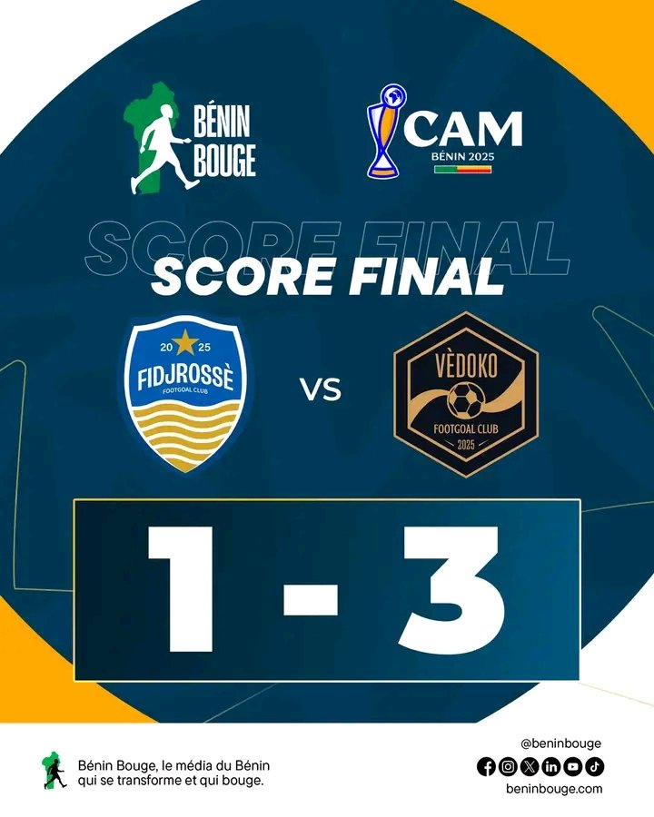 Après le duel des célébrités, place au football pur. Le premier match officiel de la CAM 2025 a opposé Vedoko FC à Fidjrossè FC. Verdict : victoire 3-1 de Vedoko, solide, efficace et déjà considéré comme l’un des outsiders sérieux de cette édition.