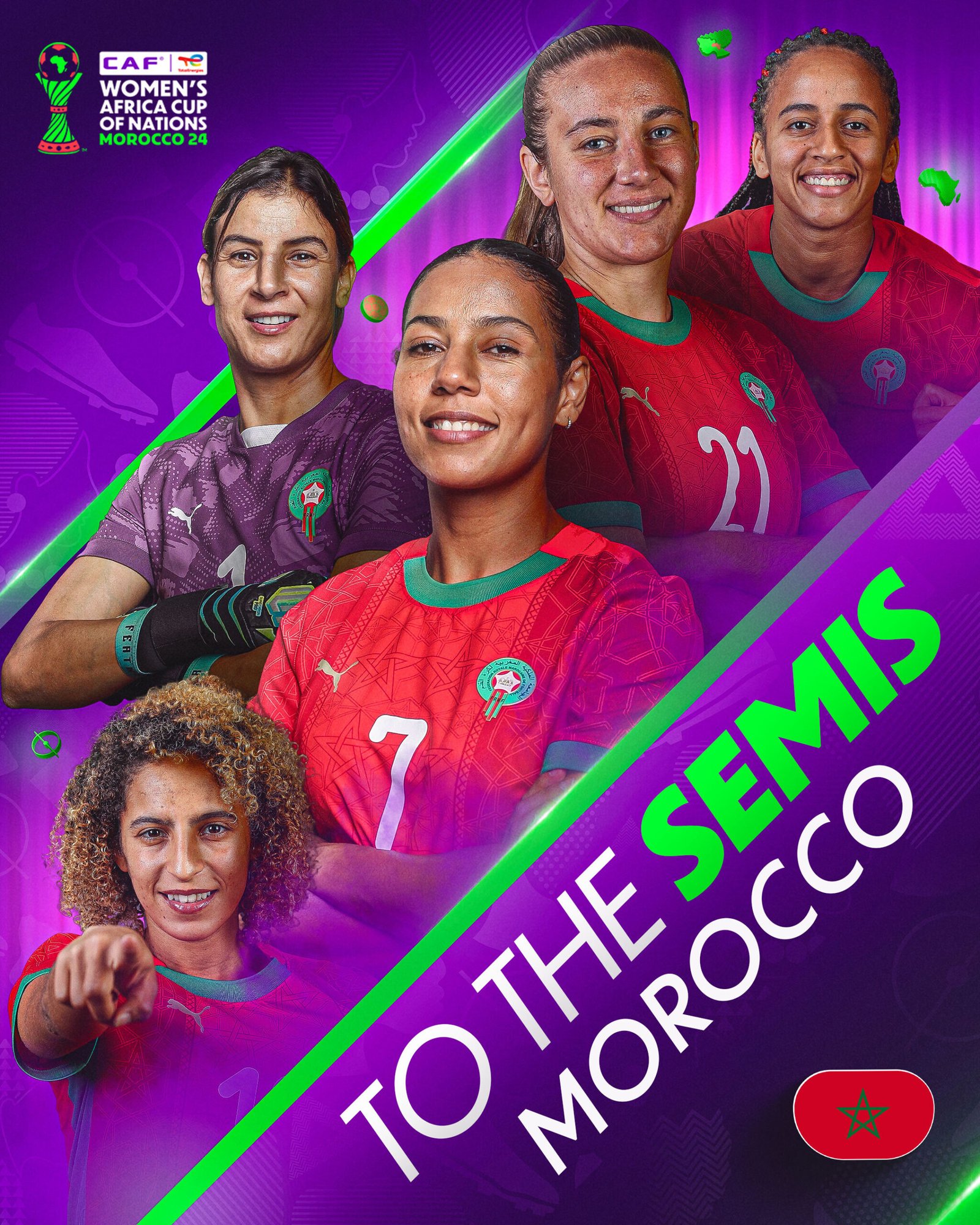 Le Nigeria et le Maroc sont les deux premières équipes qualifiées pour les demi-finales de la Coupe d’Afrique des Nations Féminine 2024. Les Super Falcons et les Lionnes de l’Atlas se sont imposées respectivement face à la Zambie et au Mali ce vendredi 18 juillet, lors des deux premiers quarts de finale de la compétition. Dans la première rencontre de la journée, le Nigeria a infligé une lourde défaite à la Zambie sur le score sans appel de 5 à 0. Les Nigérianes valident ainsi leur place dans le dernier carré avec autorité. Le pays hôte, le Maroc, a de son côté dominé le Mali 3 à 1. Devant leur public, les Lionnes de l’Atlas ont assuré leur deuxième qualification consécutive en demi-finales de la CAN Féminine.