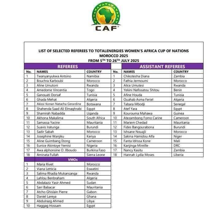 CAN Féminine 2025 : La liste des arbitres révélée, le Bénin représenté au Maroc