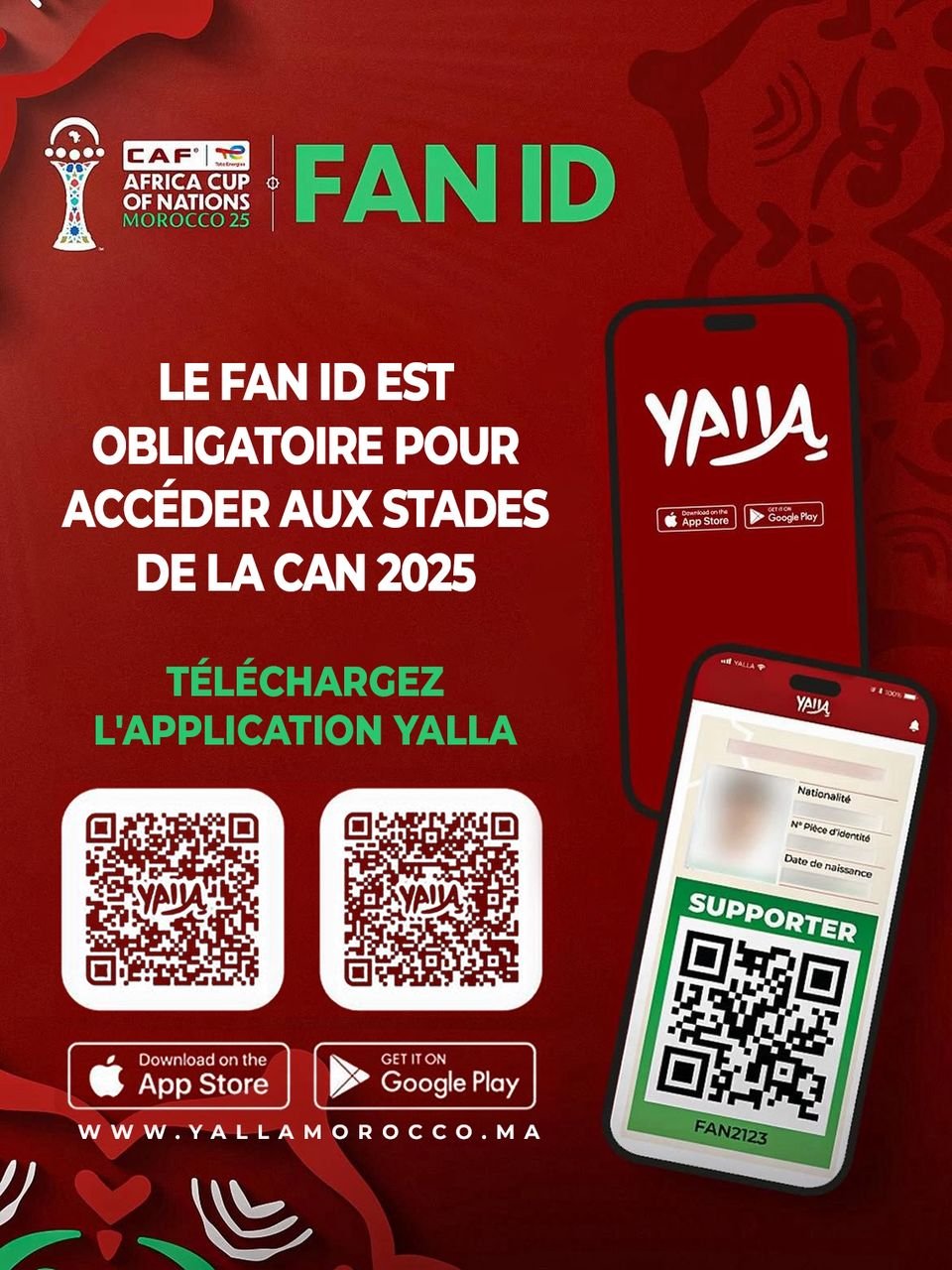 Les supporters doivent dès à présent télécharger l’application Yalla, disponible sur App Store et Play Store, pour obtenir leur FAN ID avant le début de la compétition. Sans ce précieux sésame numérique, aucun accès ne sera autorisé dans les enceintes sportives.
