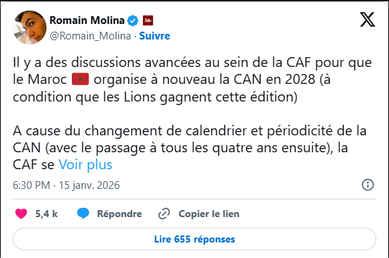 D’après les informations du journaliste Romain Molina, les discussions sont très avancées au sein de la Confédération africaine de football (CAF) en vue d’attribuer l’organisation de la CAN 2028 au Maroc. Le calendrier serré constitue un facteur déterminant : l’édition 2027 se tiendra conjointement au Kenya, en Tanzanie et en Ouganda, laissant peu de temps à une autre nation pour se préparer.
