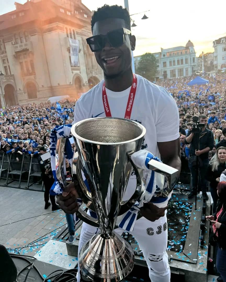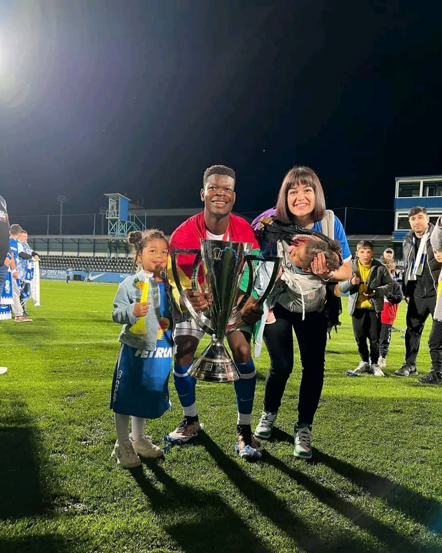 Avec son club du Farul Constanța, David kiki a décroché le titre Champion de Roumanie 2023 le dimanche 21 mai 2023. À l’issue d’une belle saison, l’international béninois et ses coéquipiers ont été récompensés. Après le match du titre, l’heure a été aux célébrations. David Kiki, avec le drapeau béninois au dos, entouré de sa famille, a alors posé fièrement avec le trophée de Champion. Il n’a pas caché sa joie et sa fierté.