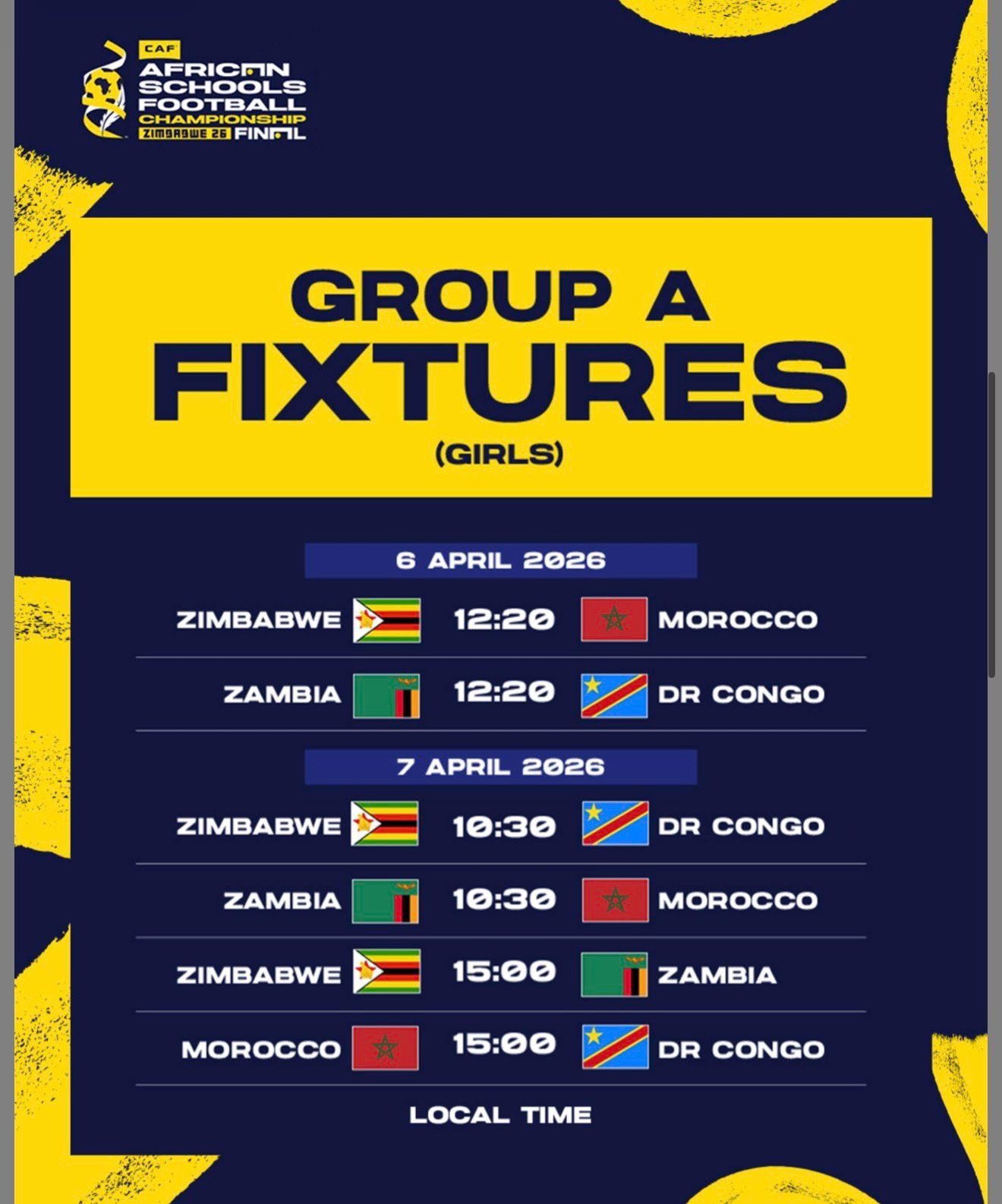 La phase finale réunira les meilleures équipes scolaires U-15, aussi bien chez les garçons que chez les filles. À l’issue du tirage au sort effectué à Harare, les huit équipes qualifiées dans chaque catégorie ont été réparties en deux groupes de quatre. Les deux premières équipes de chaque groupe accéderont aux demi-finales, promettant une compétition intense et relevée dès les premiers matchs.