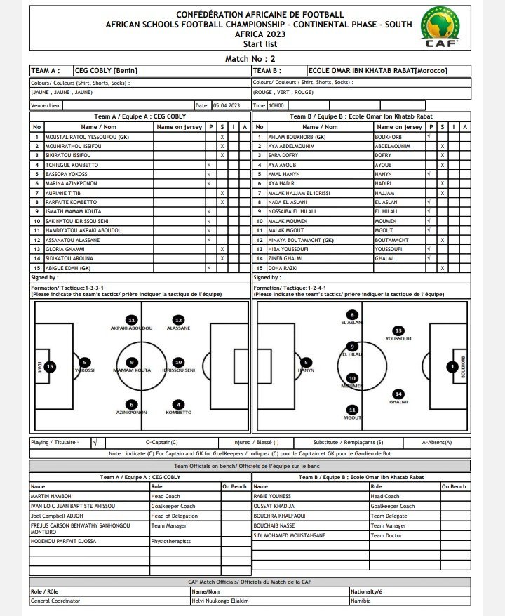 Pour leur entrée en lice dans cette première édition de CAN Scolaire, les filles du CEG Cobly ont tenu en échec leurs homologues de l’Ecole Omar Ibn Khatab du Maroc (0-0. C’était ce mercredi 05 avril 2023.
