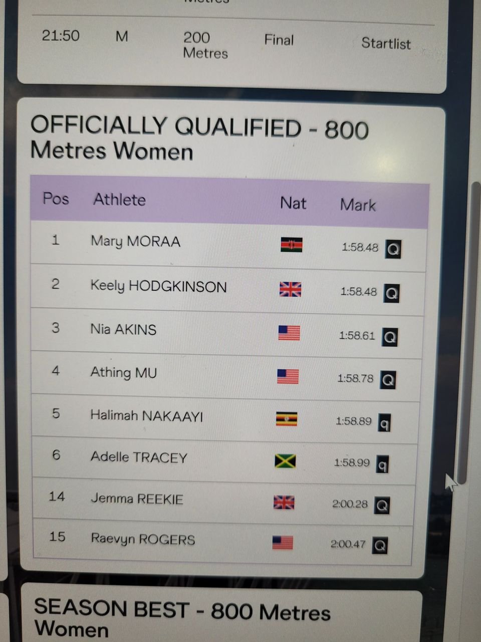 Le niveau de compétition était particulièrement élevé lors de cette demi-finale. La troisième et quatrième série se sont avérées plus rapide, avec des concurrentes qui ont couru en dessous de 1’59. Malheureusement, Noélie Yarigo n’a pas réussi à se hisser parmi les deux premières de sa série, ce qui aurait été nécessaire pour accéder à la finale.