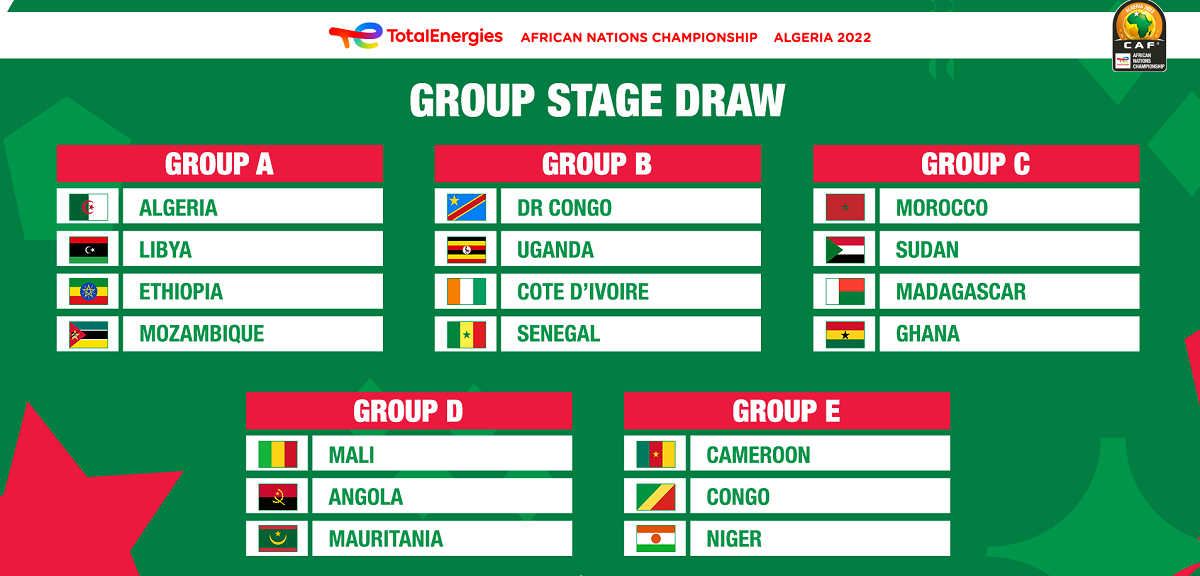 Du 13 janvier au 4 février 2023 en Algérie, est prévu le CHAN 2022 (équivalent de la CAN mais réservée aux joueurs locaux). La dernière étape avant le début de la compétition qui opposera pour la première fois 18 équipes, a été franchie ce samedi 1er octobre 2022. A Alger, la CAF a procédé au tirage au sort de la phase de groupe du tournoi. Découvrez le tirage complet.