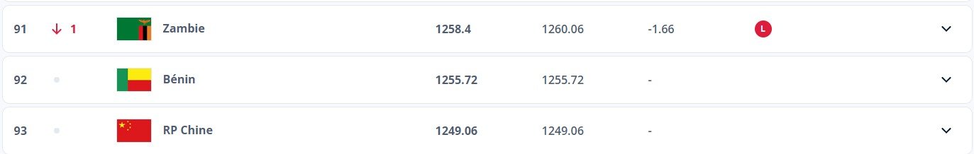 Le Bénin conclut l’année 2025 sans évolution au classement FIFA. Dans sa mise à jour publiée ce lundi 22 décembre 2025, l’instance internationale n’a enregistré aucun mouvement concernant les Guépards. En effet, la sélection béninoise conserve exactement les mêmes positions que lors des précédents classements d’octobre et novembre 2025. Les hommes de Gernot Rohr restent 92es au classement mondial. Sur le plan continental, le Bénin maintient également sa place, demeurant 20e nation africaine. Un statu quo qui permet aux Guépards de terminer l’année 2025 dans le top 20 africain, sans recul ni progression.