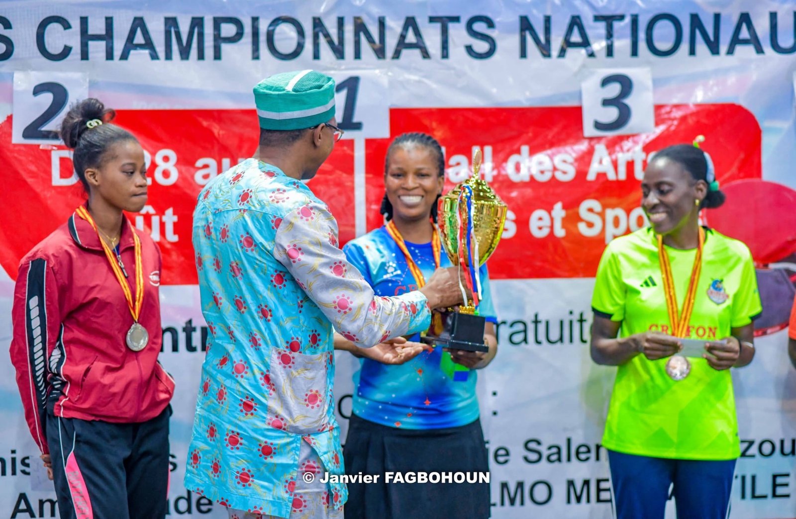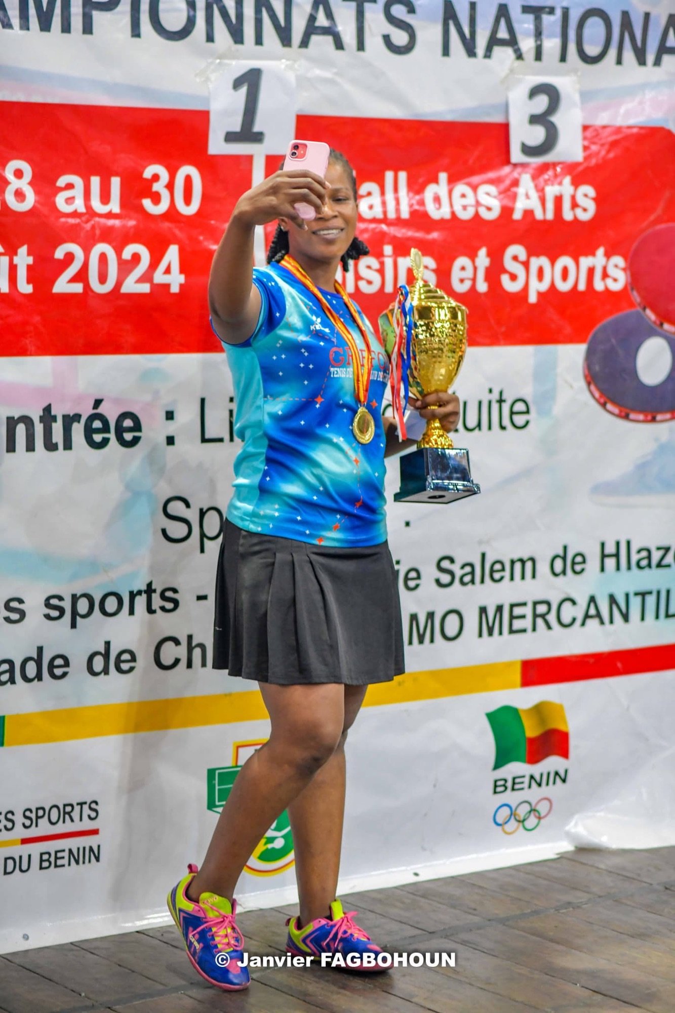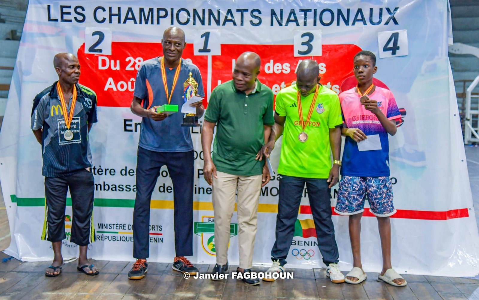 Le mercredi 28 août 2024, la Fédération Béninoise de Tennis de Table, sous la présidence de Francis Dossou, a clôturé l’édition 2024 des Championnats Nationaux de Tennis de Table du Bénin. Les grandes finales de cet évènement organisé au Hall des Arts et Loisirs de Cotonou ont livré leurs verdicts après une série de compétitions.