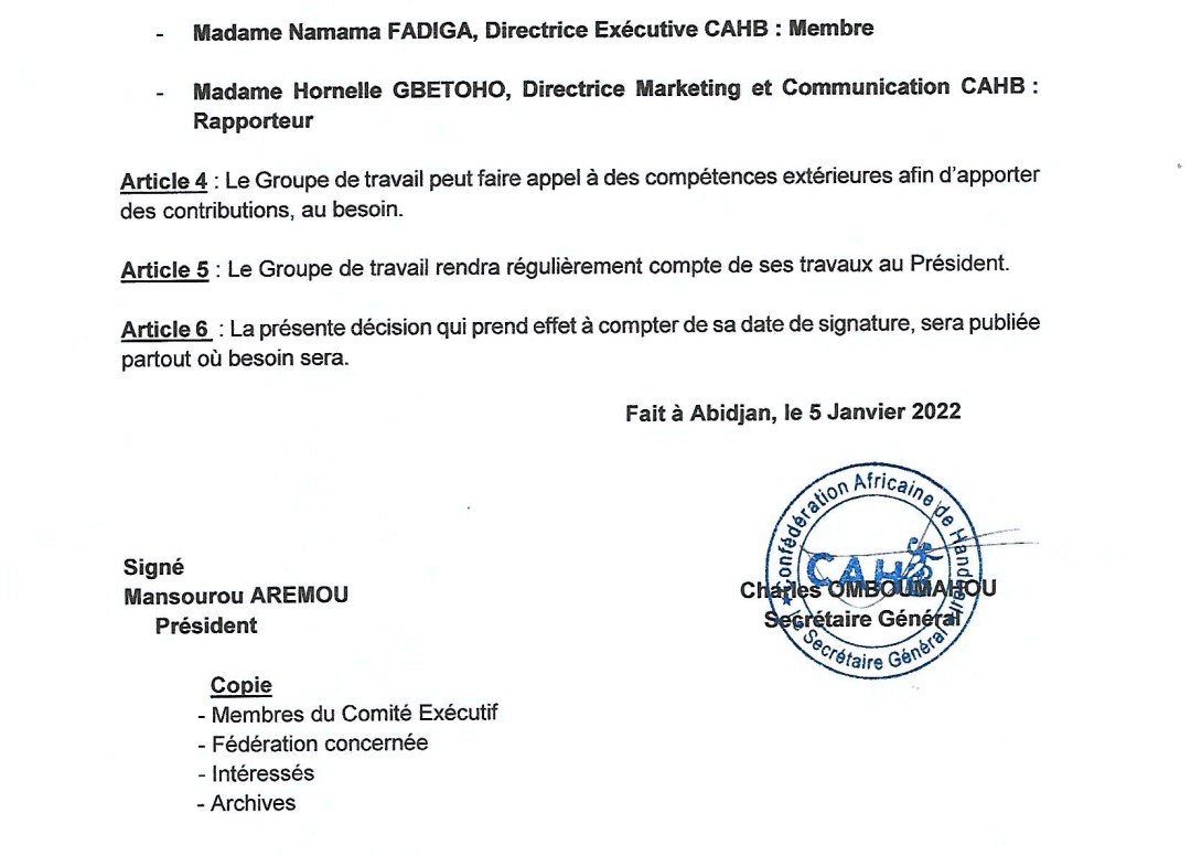 L’information a été révélée par l’intermédiaire d’un communiqué de la confédération Africaine de Handball. Ci dessous des images de l’intégralité du communiqué :