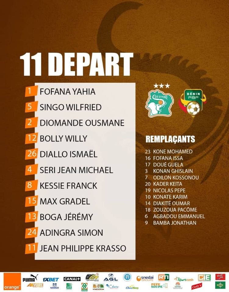 Voici le Onze de départ officiel des Éléphants contre le Bénin