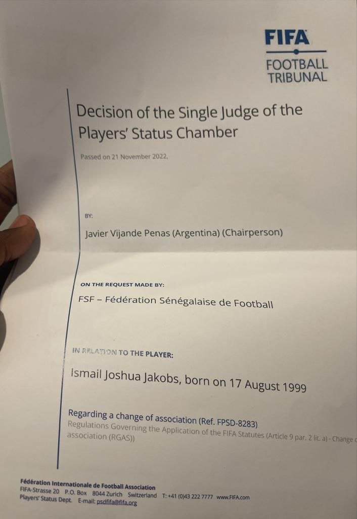 Ce n’est que ce lundi 21 novembre 2022, jour du match du Sénégal, que la FIFA a finalement validé le changement de nationalité du désormais sénégalais Ismail Jakobs. Une bonne nouvelle pour le Sénégal puisque dans la foulée, le joueur a découvert le Mondial 2022, lors du match contre les Pays-Bas, où il est entré en jeu.